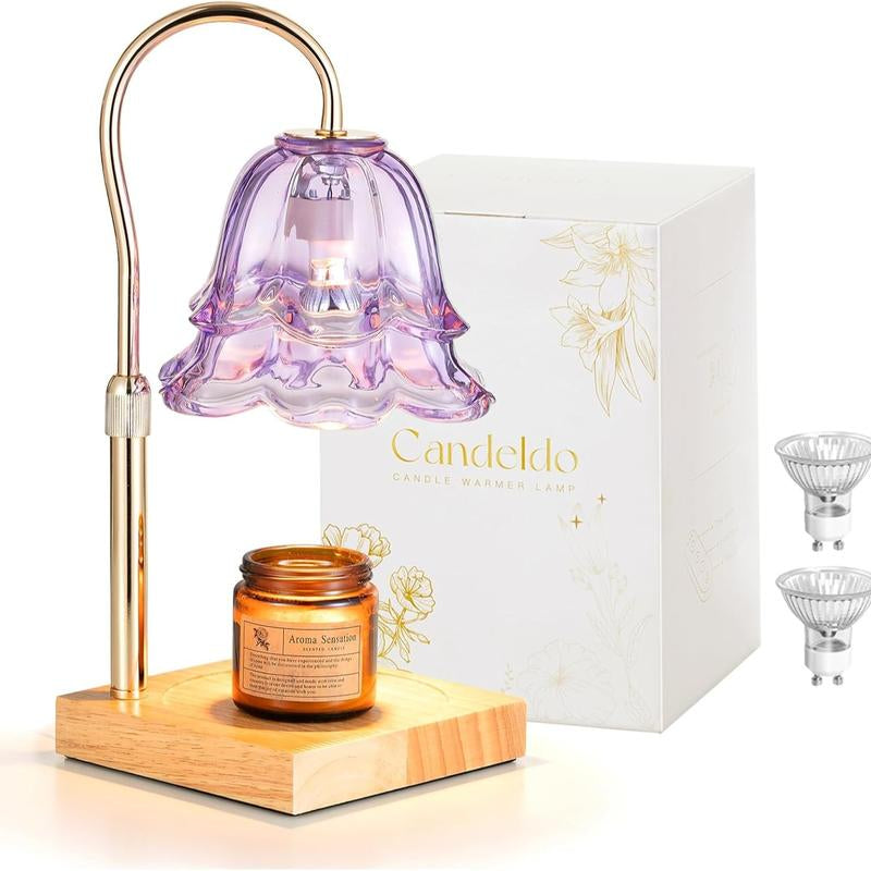 Flower Candle Warmer Lamp with Timer : with 2 Bulbs, Table Lamp Height Adjustable, Home Bedroom Decor, House Warming Gift, Birthday Gift, Gift for Women, Mother'S Day Gifts Decoration Items Ornaments, Halloween Gifts, Christmas Gifts